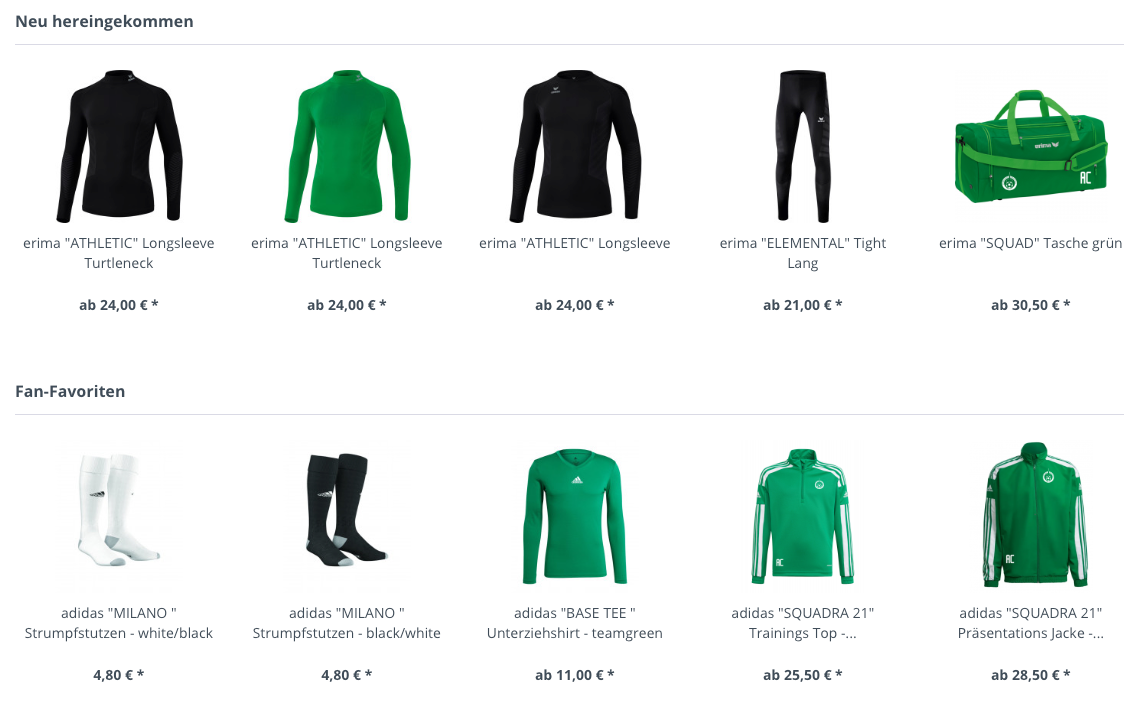 Du kannst zwischen zwei starken Vereinskollektionen der Hersteller adidas und erima wählen – ganz wie es Dir gefällt. Die Auswahl ist groß, aber immer grün-weiß. Zum attraktiven Vereinsrabatt hast Du die Möglichkeit über unseren Shop-Partner 11teamsports alles zu bestellen, was Dein grün-weißes Herz begehrt. Wichtig: Der GWB-Shop ist hauptsächlich für Einzelbestellungen gedacht – Team-Bestellungen solltet Ihr über den Verein, beispielsweise über die sportliche Leitung abwickeln. So erhaltet Ihr noch günstigere Konditionen.